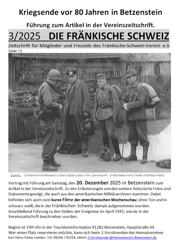 Vortrag mit Führung am Samstag, 20. Dezember 2025 in Betzenstein.